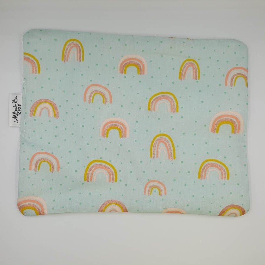 Χειροποίητο πετσετάκι θηλασμού με ουράνια τόξα.