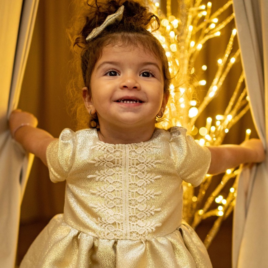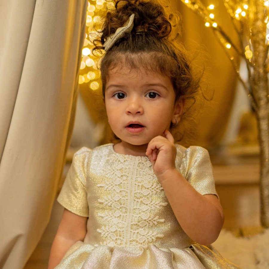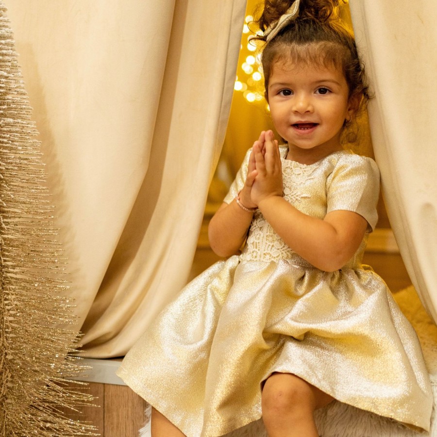 Αμπιγιέ παιδικό φόρεμα για λαμπερές Χριστουγεννιάτικες εμφανίσεις μαζί με φιογκάκι για τα μαλλιά.