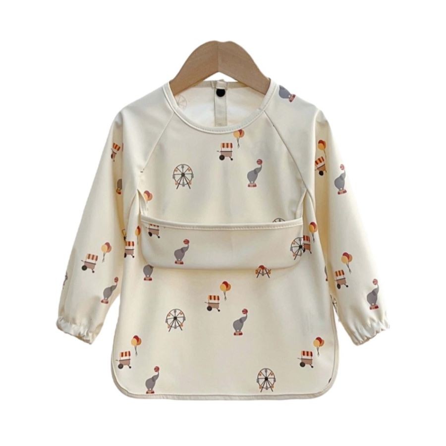 Όπως όλοι γνωρίζουμε η ώρα του φαγητού μπορεί να είναι μια δημιουργική αλλά και ακατάστατη δουλειά, επομένως μια σαλιάρα με μανίκια είναι, μερικές φορές, η μόνη επιλογή! Με πλήρως αδιάβροχα μακριά μανίκια για επιπλέον κάλυψη αλλά και μια καινοτομία! Διαθέτει μια αναδιπλούμενη τσέπη στο ύψος του στήθους (όπου δεν χρειάζεσαι έξτρα σαλιάρα σιλικόνης )για να συγκρατεί μέρος του φαγητού ώστε να μην καταλήξει στο πάτωμα.