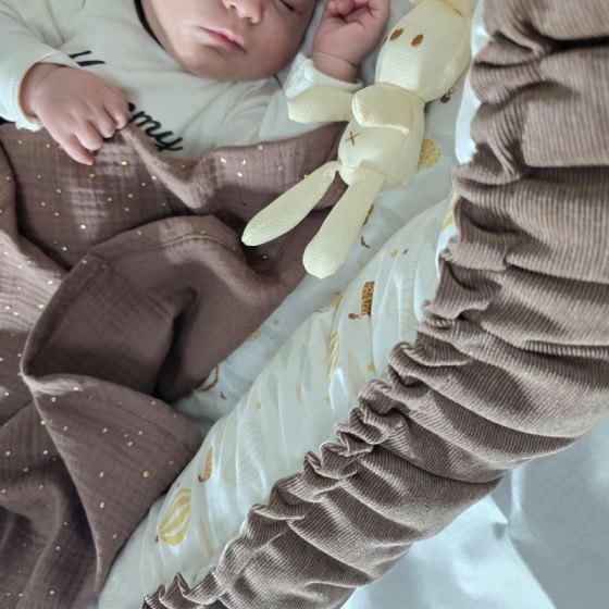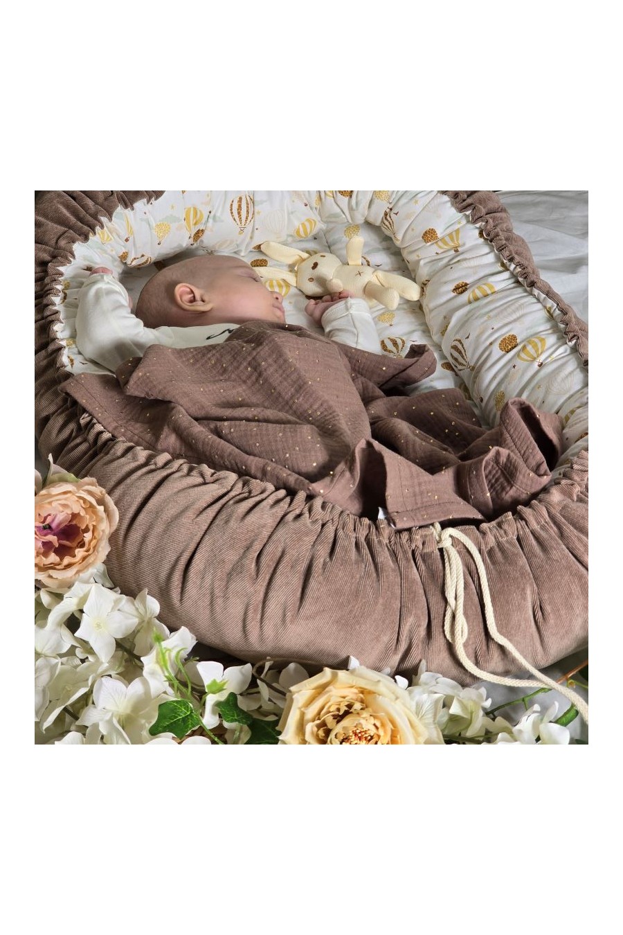 Χειροποίητη βρεφική φωλιά διπλής όψης, που προσφέρει ζεστασιά και ασφάλεια στο μωράκι σας.