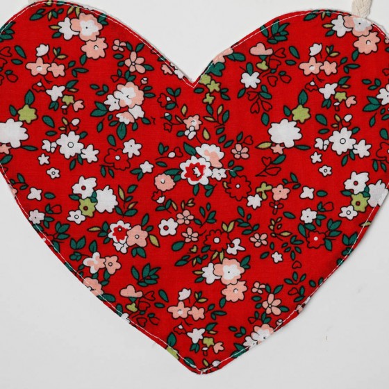 Σαλιάρα με μικρό έντονο κόκκινο ή μπλε φλωραλ σε σχήμα καρδιάς, κατασκευασμένη από 100% βαμβακερό ύφασμα και μαλακό πικέ εσωτερικά, πιστοποιημένα σύμφωνα με το Oeko-Tex Class 1. Συνδυάζοντας με τον καλύτερο τρόπο στυλ και άνεση.