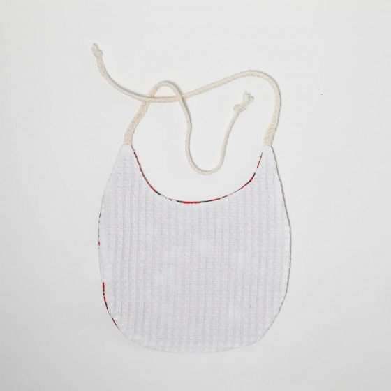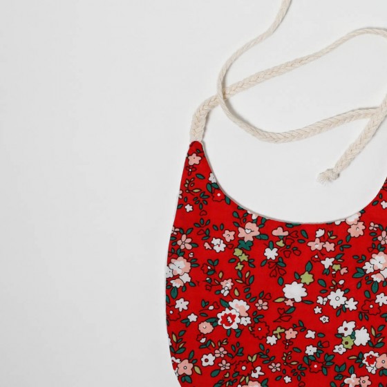 Σαλιάρα με μικρό έντονο κόκκινο φλωραλ ,κατασκευασμένη από 100% βαμβακερό ύφασμα και μαλακό πικέ εσωτερικά, πιστοποιημένα σύμφωνα με το Oeko-Tex Class 1. Συνδυάζοντας με τον καλύτερο τρόπο στυλ και άνεση.