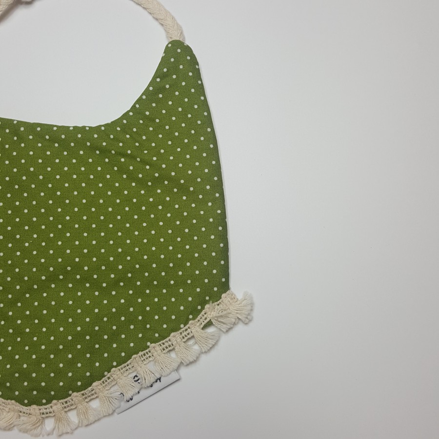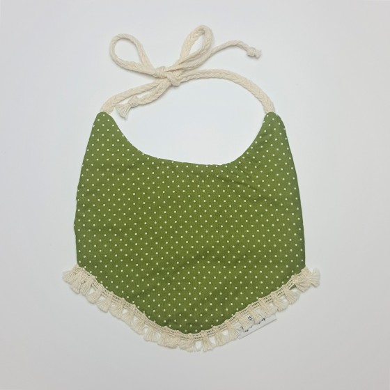 Σαλιάρα πουά πράσινο με δέσιμο, στολισμένη με boho κρόσσι.