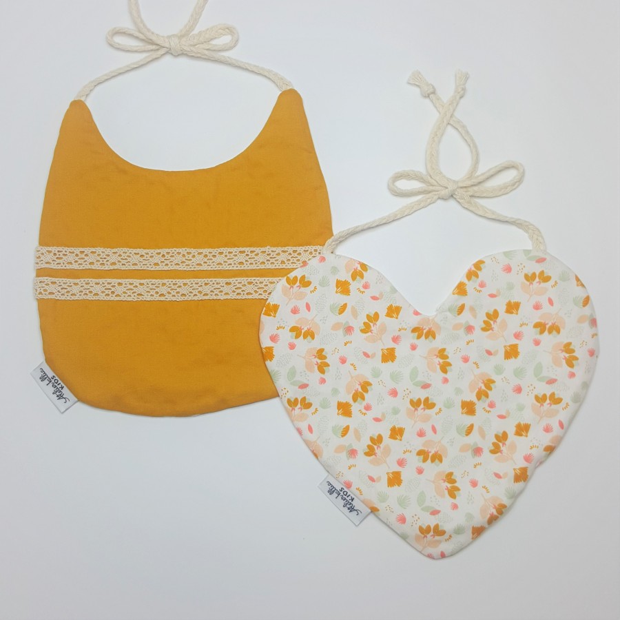 Σαλιάρα floral, με δέσιμο . Σε ιδιαίτερο και μοναδικό κυκλικό καρδιάς.
