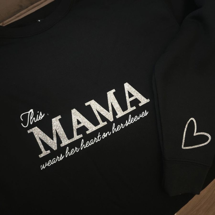 Μαύρο φούτερ ''This MAMA wears her heart on her sleeves''